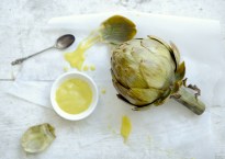 An unseemly noise for a teenager, let alone a human came from me when I first dipped the leathery leaf of an artichoke into a mustardy…