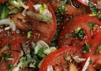 While I happily eat my way through bowl after bowl of dressed green leaves, some dishes call out for a tomato salad. Ripe just to the…