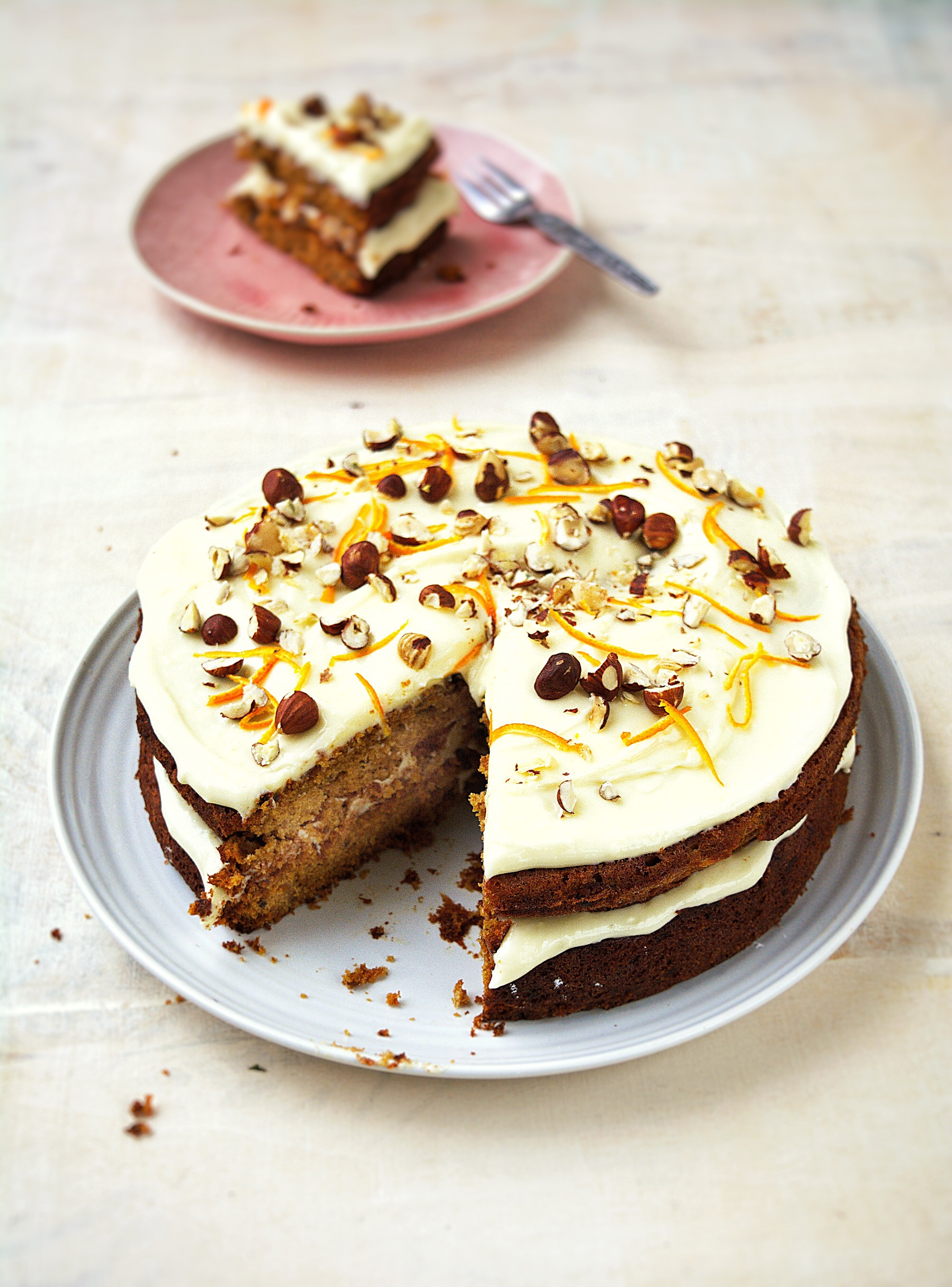 Stir in the orange blossom water and carrots and mix well, but gently. Divide between two 19cm prepared cake tins and bake immediately at 180c for approximately 40 minutes.