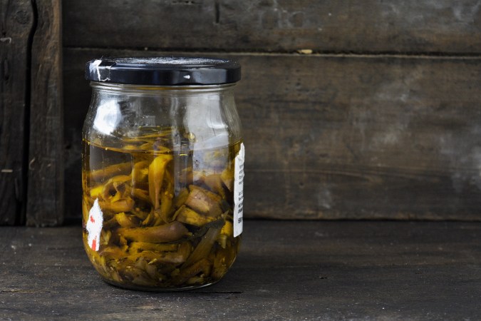 Put in a sterilised jar with the garlic, oregano and vinegar then cover in olive oil. Leave for a few days in the fridge before eating and keep for up to a week, if it lasts that long.