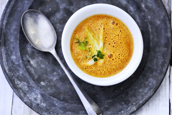 It’s a really wonderful, powerful soup, absolutely full of flavour. I like mine with a little more of a Cayenne pepper kick than is strictly necessary. It’s great with a little tarragon creme fraiche stirred through at the end and even nicer with a fat tortellini stuffed with crab meat and spring onion in the middle.