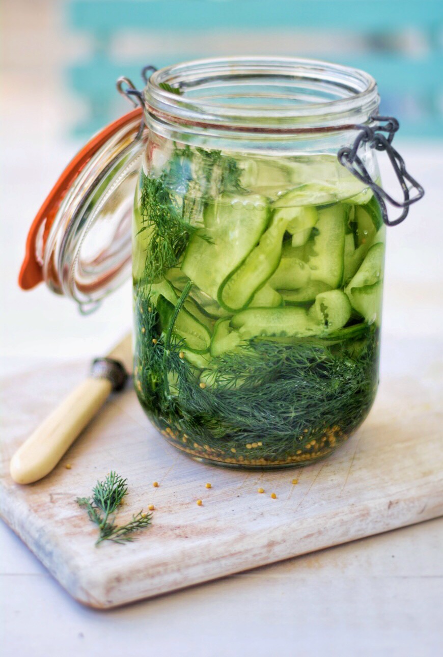 Leave for at least half an hour before eating. This will keep in the fridge for about a week and you can then top up with new cucumber twice more before you need fresh pickling liquid.