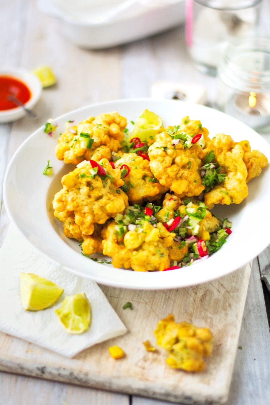 Blitz together all the ingredients (apart from the oil and the serving extras) until you have a fairly thick and creamy batter. Try not to blitz the corn too much, half puréed and half whole is ideal.