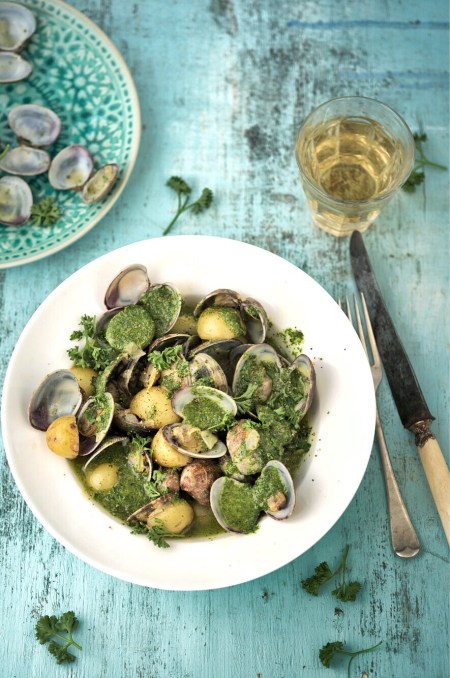 Today’s recipe is elegant and parsimonious in its ingredients, it uses clams which are at their best at this time of year from the cold waters around the UK. It’s much more than the sum of its parts. I’ve used Cornish ones but this dish would be equally delicious with what the Scottish call ‘spoots’. I’d call it Occam’s razor clams.