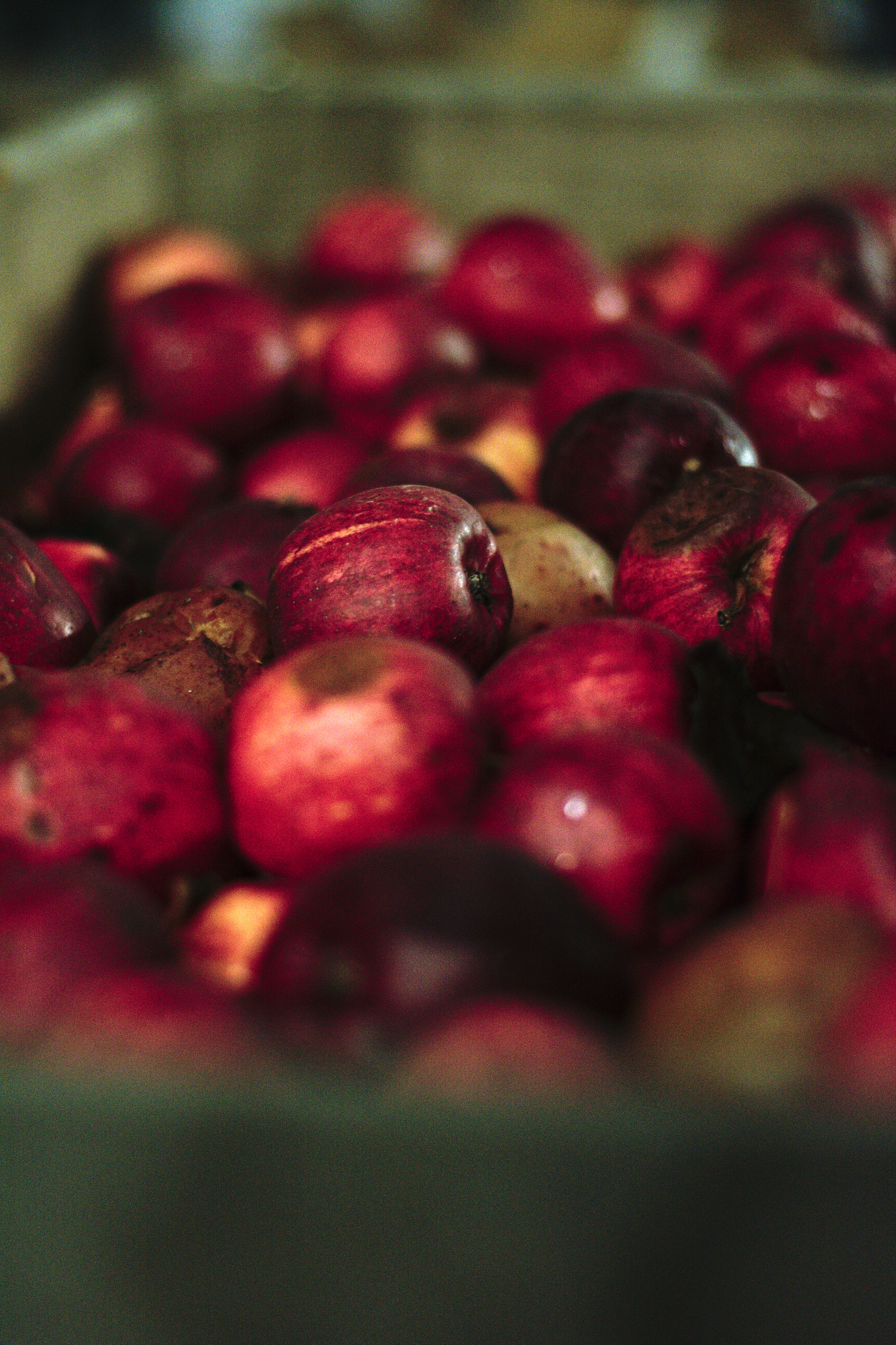 The longer storing varieties of apples, held back for this lull — some in low oxygen storage — can be pressed for juice, ensuring a constant year round supply. Vats of cider vinegar are in the background too; the raw, unpasteurised stuff, full of good bacteria and culture, just like my French family. These are sold along with the juices, purées and fruit and veg at the farmers markets and shops the farm supply.